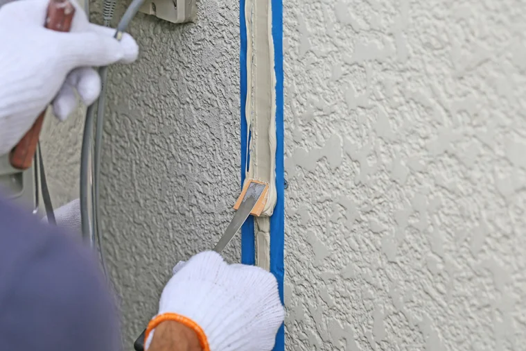 建物の外壁ボード間のつなぎ目や窓のサッシと壁の隙間など、建物の隙間や目地に、防水性・気密性のある柔軟なシーリング材を充填し、雨水などの水の侵入を防ぐ工事です。